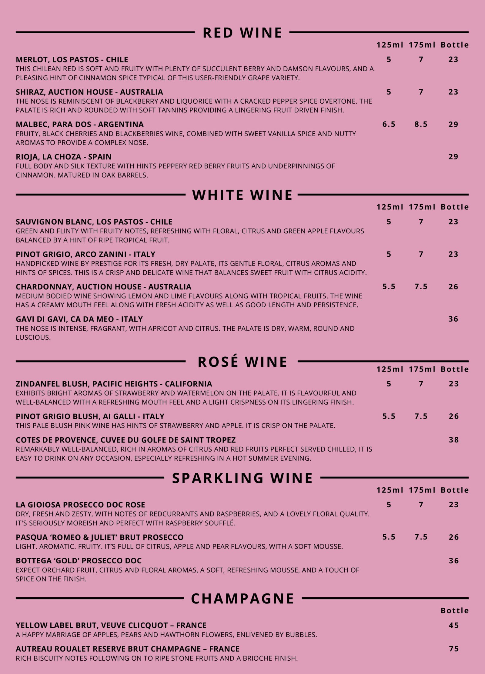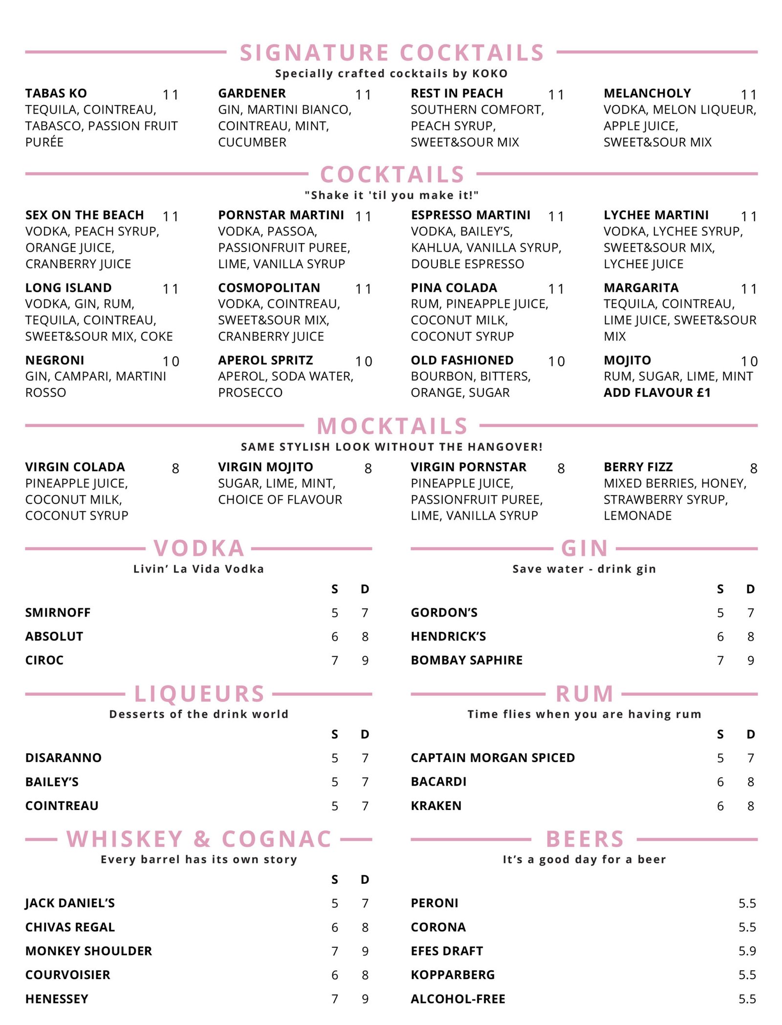 Alcohol Menu